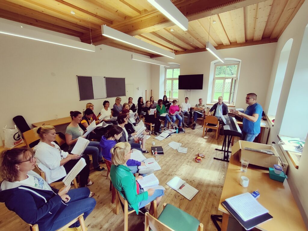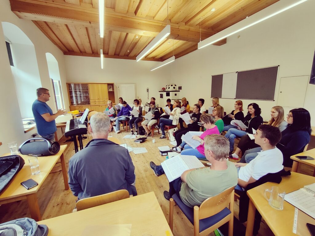Doch zu lange ließ uns unser Chorleiter nicht verweilen, da unser Hauptansinnen nicht das Wandern, sondern das Singen war. Also runter mit uns und ab in den Probenraum. In dieser wunderschönen Landschaft probten wir viel Neues – sogar bis in die Nachtstunden und auch noch sonntags.