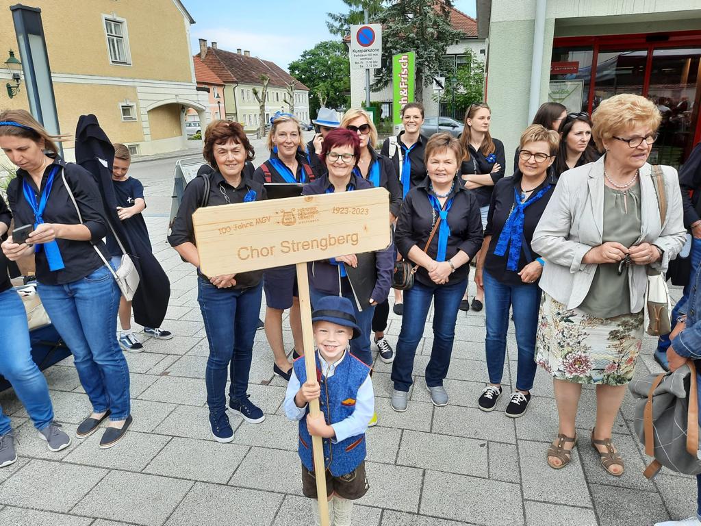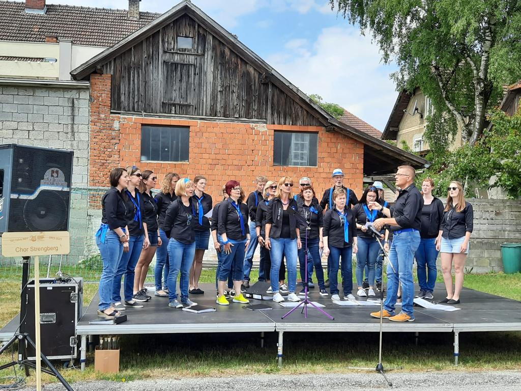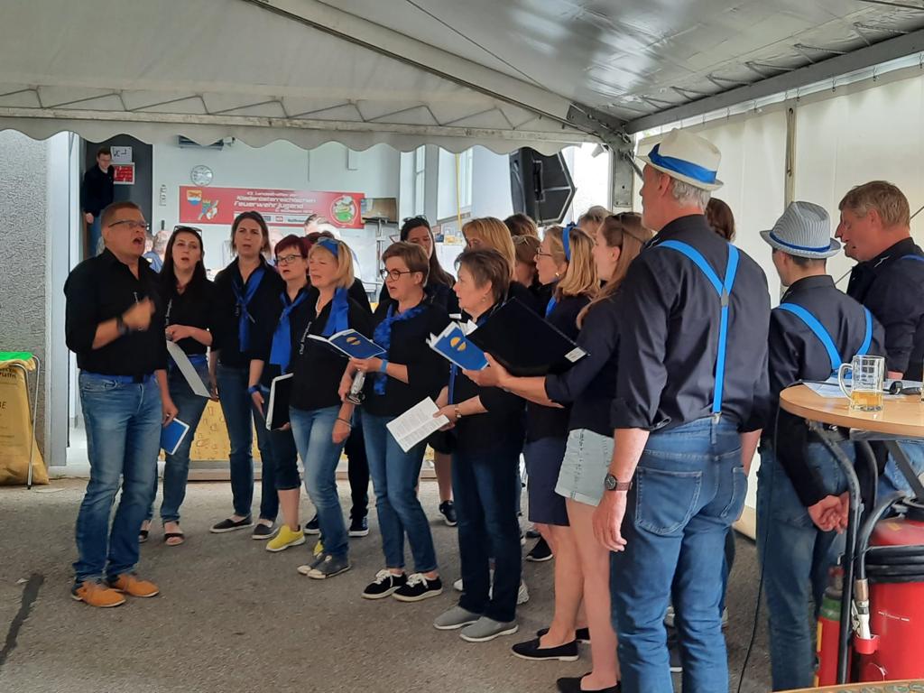 Mit vollem Einsatz waren wir beim Jubiläums-Kranzlsingen „Wolfsbach singt“ am 4. Mai 2023 dabei. Bei schönstem Wetter waren wir einer von 19 Chören, welche die vielen Gäste unterhielten. Fünf Stationen führten uns durch Wolfsbach.
